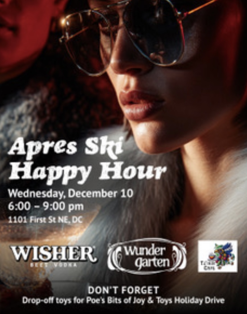 Wisher Vodka is teaming up with Wunder Garten for an Après Ski Late Night Happy Hour. We’re extending their happy hour into the evening with a special Wisher cocktail menu and espresso martinis provided by Tz’ikin Cafe. Come bundled up for cozy, seasonal touches, including a wreath-making station, a Christmas market, and even a place onsite to purchase Christmas trees. It’ll be a fun, festive environment to meet new people, reconnect with familiar faces, and enjoy a winter night out in DC.