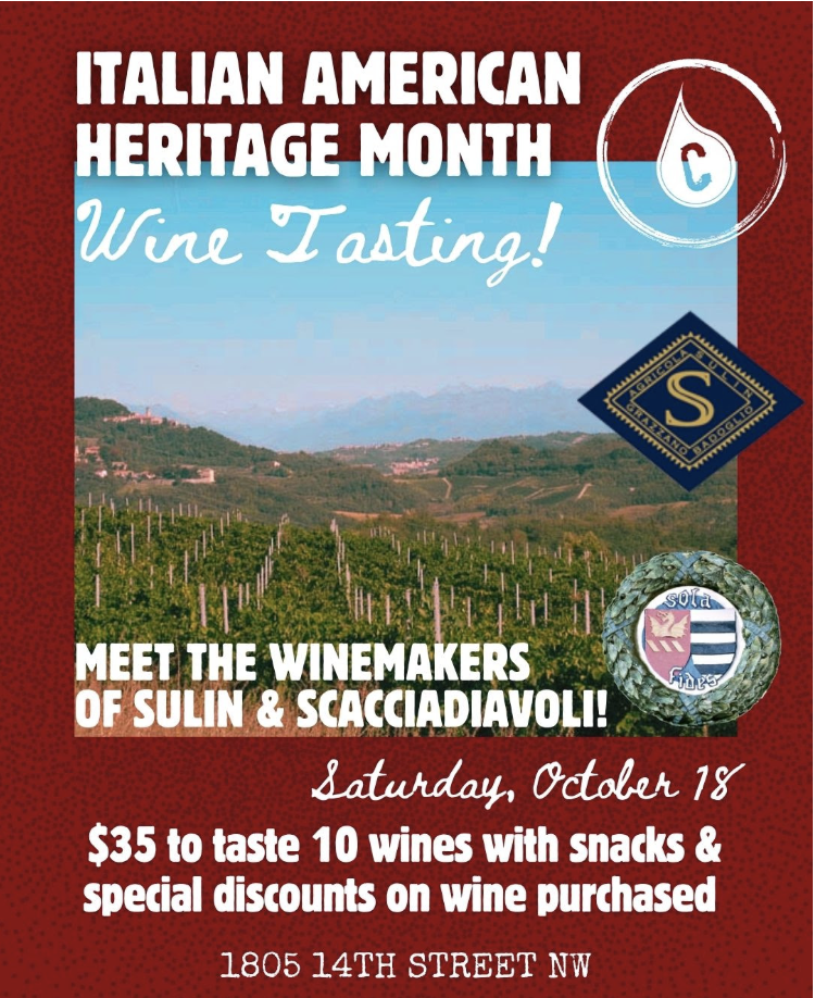 On Saturday, October 18, 2025, wine lovers are invited to gather at 1805 14th Street NW in Washington, DC for a special Italian Wine Fest featuring the esteemed Sulin and Scacciadiavoli wineries. From 3:00 to 5:00 PM, winemakers Vittorio Fracchia and Iacopo Pambuffetti will present a guided tasting of 10 distinctive wines—including a few unexpected surprises—accompanied by light bites from Cork’s Kitchen. This exclusive event offers guests a rare opportunity to experience the craftsmanship of two celebrated Italian producers side by side in an intimate and flavorful afternoon.Grab your tickets HERE.