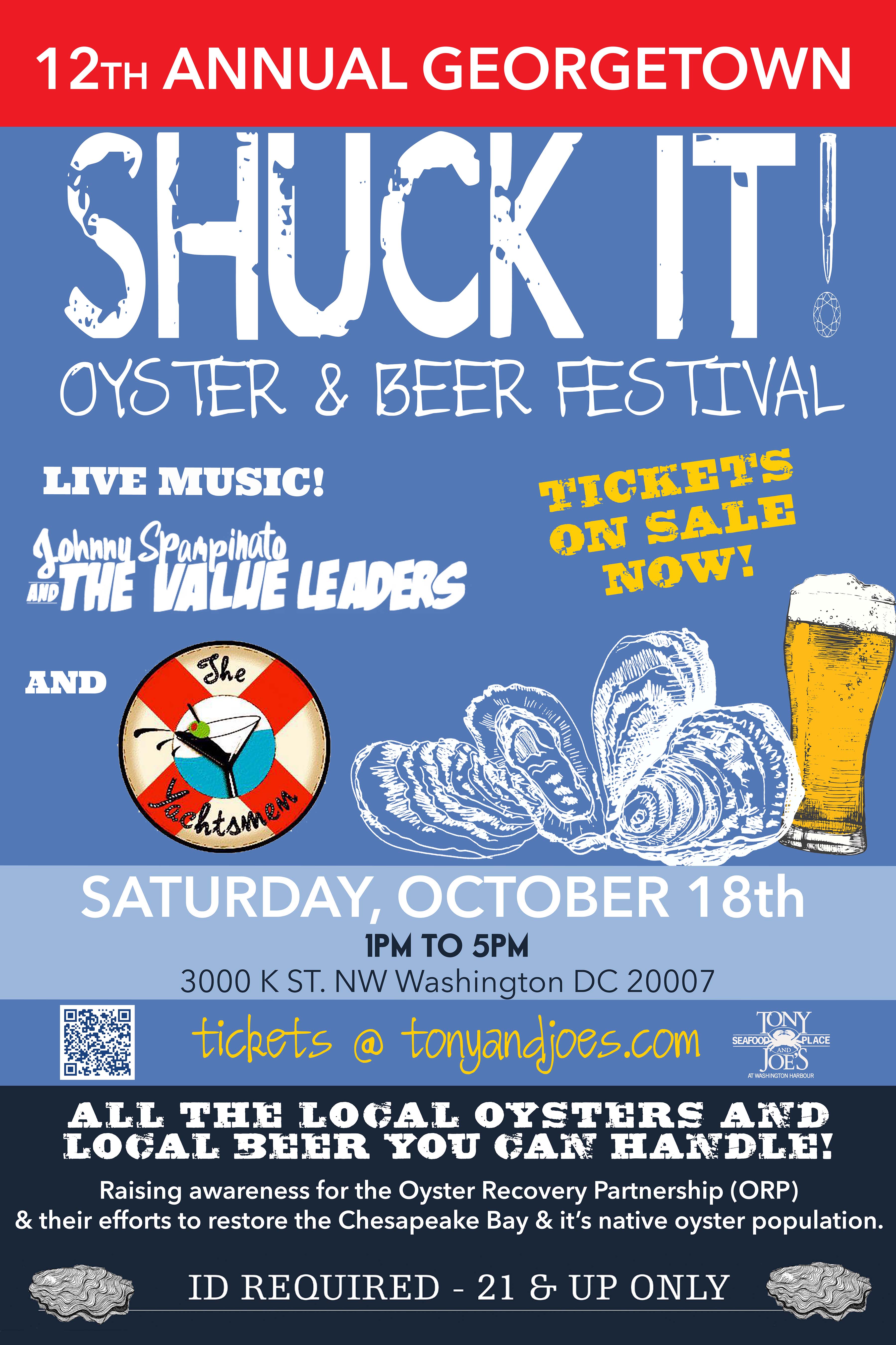 Tony and Joe’s invites guests to the 12th annual Georgetown Shuck It! Beer and Oyster Festival on Saturday, October 18, 2025, from 1 to 5 PM. This lively waterfront celebration features freshly shucked and grilled oysters from local suppliers, craft beers from area breweries, regional wines, and classic BBQ favorites. Guests 21 and over can enjoy a vibrant afternoon of food, drinks, and live music from fan-favorite bands The Yachtsmen and Johnny Spaminato & the Value Leaders. Admission priced at $75 per person. ID required for entry. Click HERE to grab your tickets.