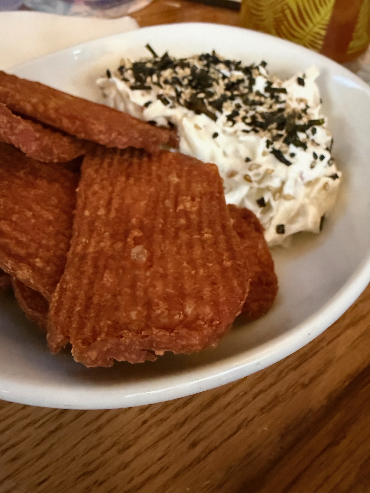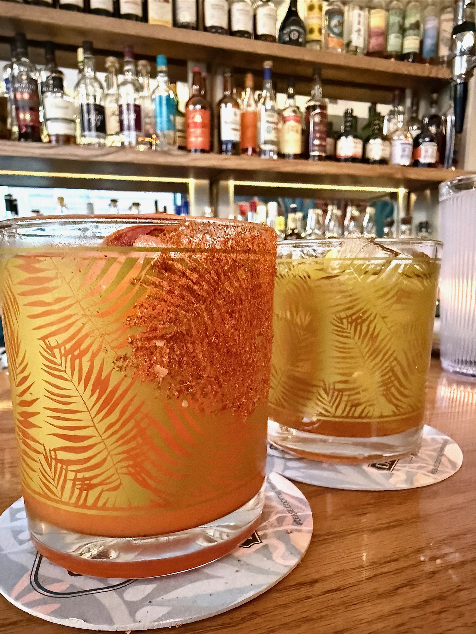 First stop after driving in was Pink Flamingo. I’ve been hearing so much about this tropical rum bar in Remington from Brendan Dorr and Eric Fooy, the team behind Dutch Courage. The cocktail list is serious, but the vibe is all fun. I ordered the Fire Blend with tequila, blood orange, Calabrian chili honey, lime, and a spiced rim. If you know me, you know cocktails can sometimes be a little too sweet for my taste, but this one had just the right balance of heat, citrus, and spice. What surprised me most were the snacks. The Spam chips with onion dip? Ridiculously good and exactly the kind of bar bite you want with a great drink.