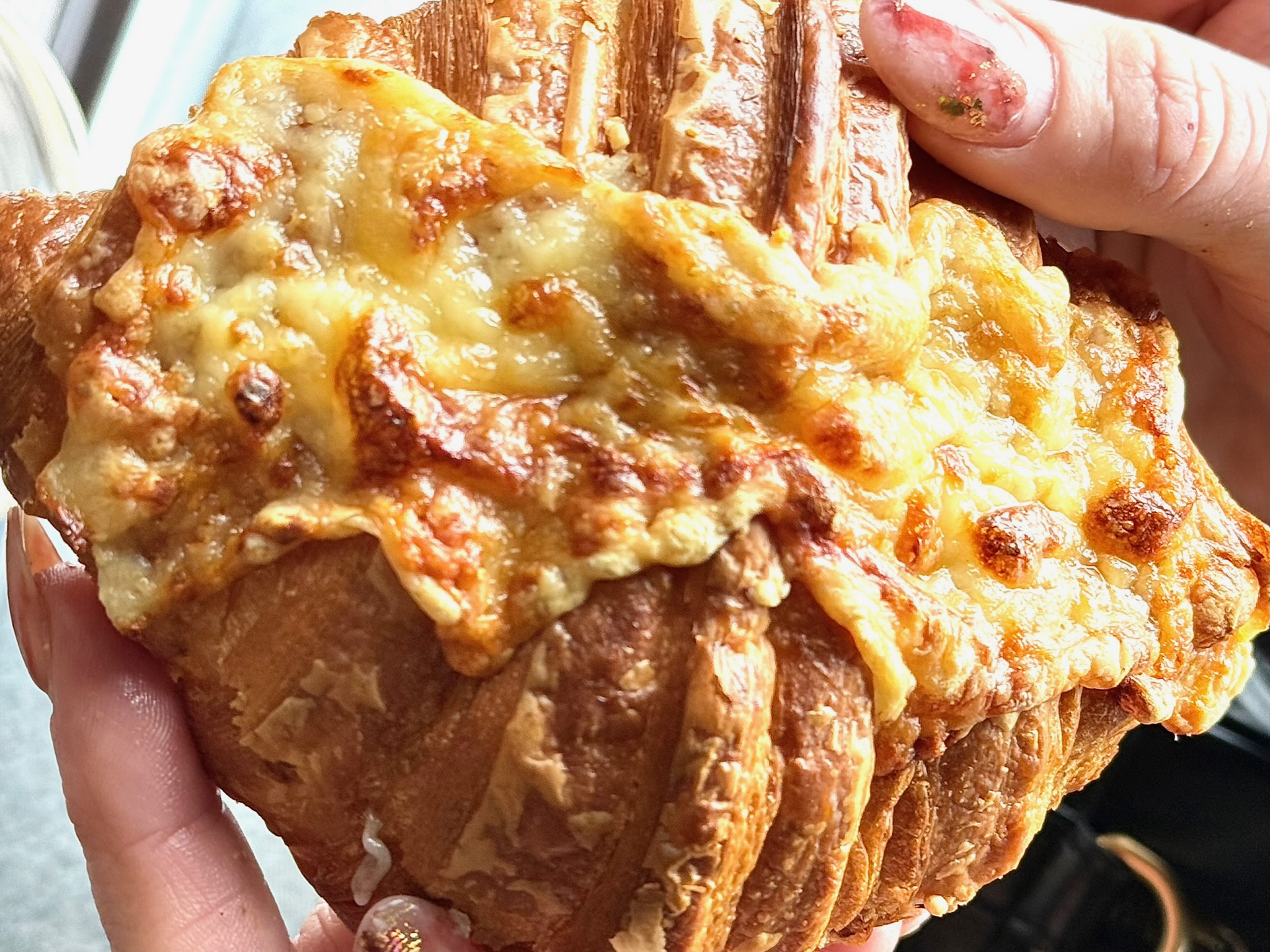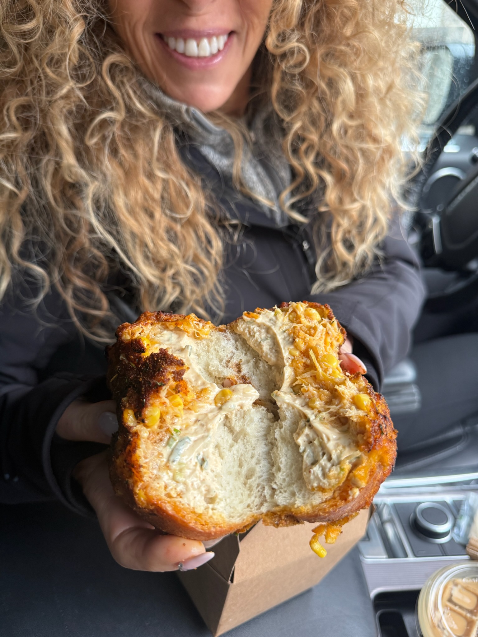 First stop was Cafe Dear Leon in Canton. This family-run bakery by Cheolsoo Lee, Sungae Lee, and Min Kim has a devoted following and once you see the pastry case you understand why. We ordered … a lot. One of the best ways to judge a bakery is by its ham and cheese croissant and this one absolutely delivered. But the real star was the crab dip stuffed bagel. Think soft inside, crispy outside, and filled with creamy crab dip with a little Old Bay kick. There’s a reason it’s gone viral. The bakery posts its daily bake schedule online, so if you want their black sesame cream pastry or that crab bagel, you have to check ahead. Snooze and you definitely lose.