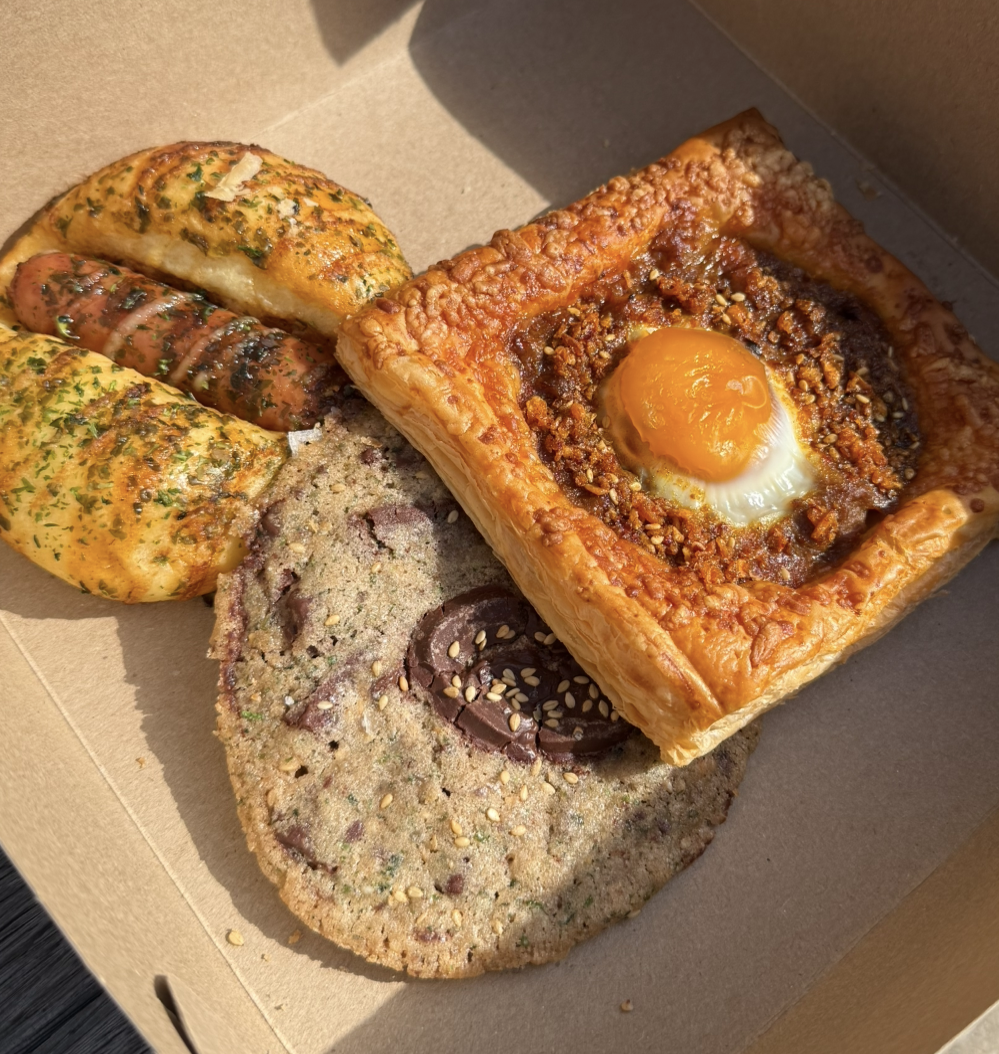 We woke up bright and early and walked our way over to Baby Chan for a variety of their baked goods. Obsessed with the curry egg tart with Japanese curry chili crisp and the chocolate cookie with seaweed and sesame.