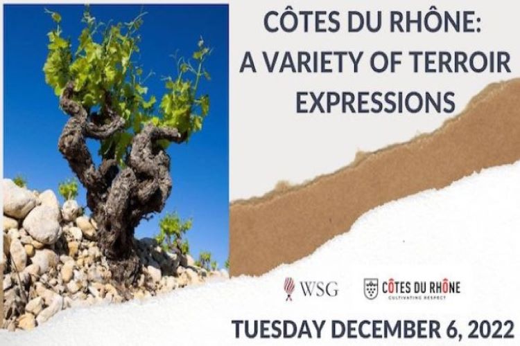 This special online tasting will allow guests to experience the distinctive expressions found in the Côtes du Rhône Villages appellations. You will taste six wines, carefully selected from the terraces and escarpments of the Southern Rhône, with each wine representing a unique terroir. During the tastin, you will have the opportunity to experiment with the Wine Scholar Guild's GeoSensorial Tasting Grid, helping you delve into the texture, structure, and mouthfeel of each wine. Tickets are priced at $65 per person and includes a tasting kit and access to the online class; purchase tickets here. Class will begin at 1:00 p.m. and run approximately 2 hours.
