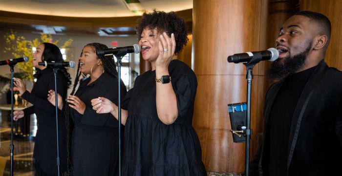 A refined and inspirational experience, featuring a glass of celebratory bubbles and specialty cuisine curated in honor of Black History Month. Enjoy the soulful and uplifting sounds of gospel favorites over tea while enjoying a selection of food and treats including Spicy Georgia Chicken Tartlette, Pecan Pie, Ambrosia Salad Parfait & Fresh Berries and a selection of loose leaf teas.