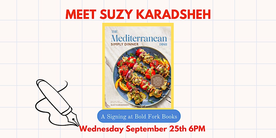 Bold Fork Books invites you to join us for: A Special Signing with Suzy Karadsheh! She'll be at the shop signing books, taking photos, and meeting fans. Every ticket entitles you to ONE BOOK. Additional books will be on sale at the event. Tickets cost $35 per person. To purchase a ticket, click here.